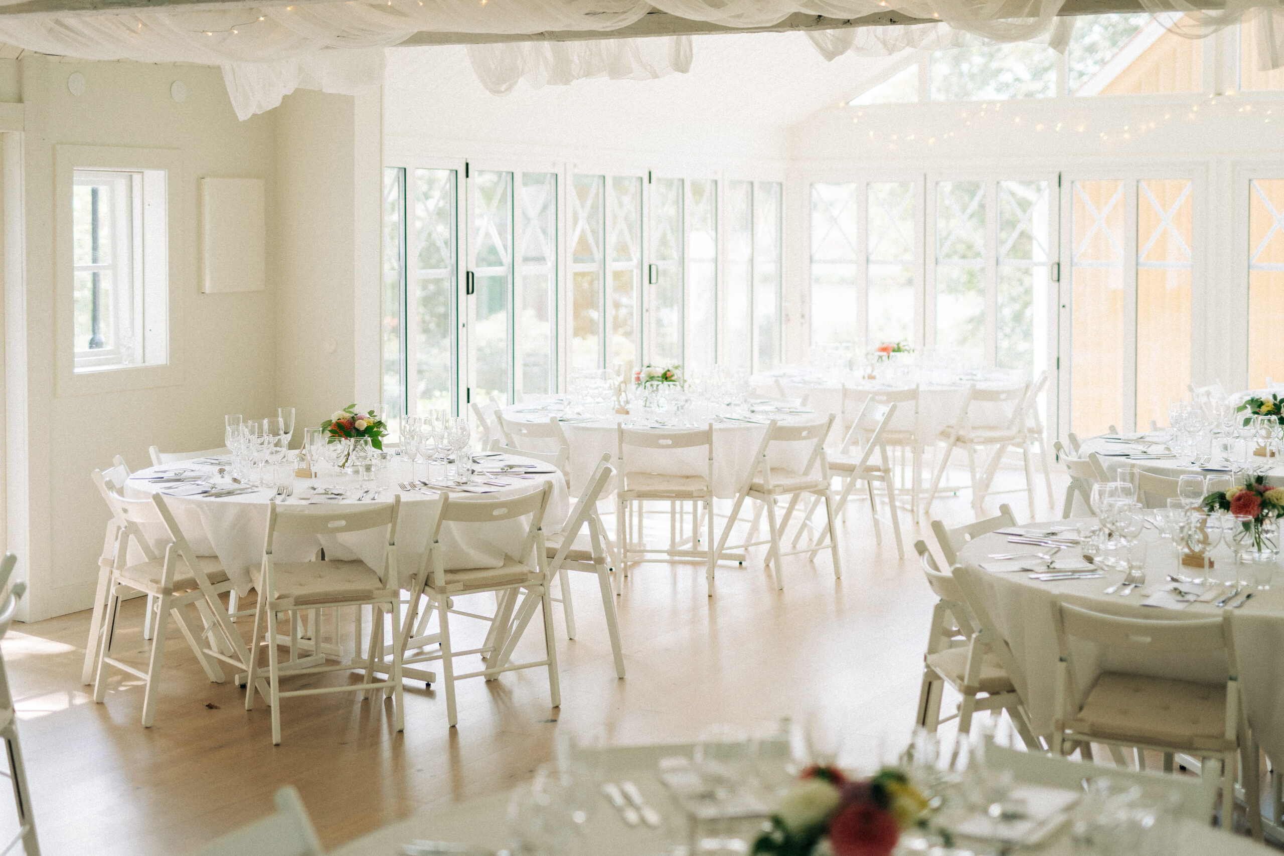 När ni abonnerar Risanäs Udde för bröllop finns allt på plats: porslin, möbler, dekorationer, musikanläggning och modern projektor. Ni behöver bara fokusera på er dag. Mat och dryck ordnar ni själva.